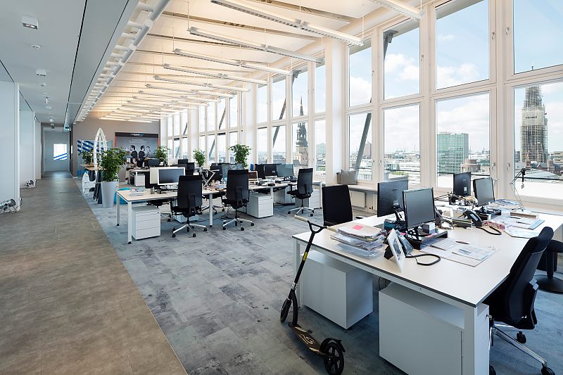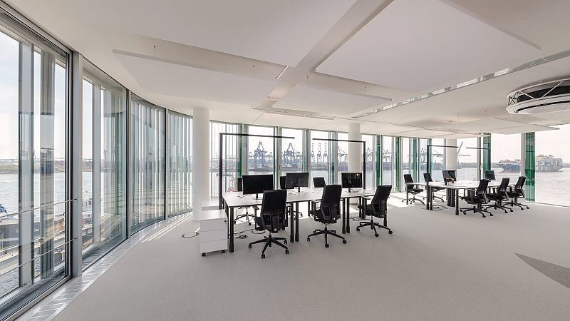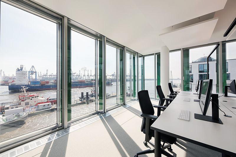 Moderner Mietflächenausbau für Mobilitätspioniere mit Rundumblick auf die Elbe. Mieterkoordination und Änderungsmanagement für den Eigentümer. Umfangreiche Instandsetzung von Gebäude und technischen Anlagen parallel zu Mieterausbau.