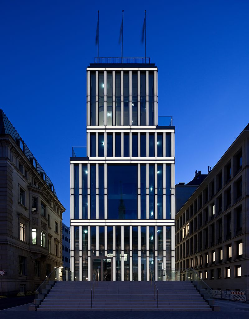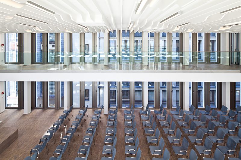 Neubau eines Schulungs- und Versammlungsgebäudes mit integrierter Gastronomie als erweiterte Präsenz der Hamburger Handelskammer in der Innenstadt. Ein Haus ohne Grundstück, es schwebt über dem Fleet und der U-Bahntrasse. Entwurfsvertiefung, Fassadenplanung, Ausführung und Projektabwicklung, sowie Innenarchitektur. Entwurfsverfasser Wettbewerb Johann v. Mansberg.