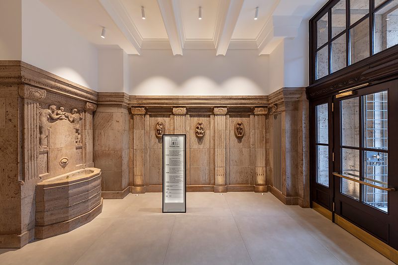 Ornament und doch kein Verbrechen. Das denkmalgeschützte Kaufmannshaus von Fritz Höger bekommt sein Foyer zurück. Konzeption, Planung und Ausführung der gesamten Maßnahme in Abstimmung mit dem Denkmalschutz.