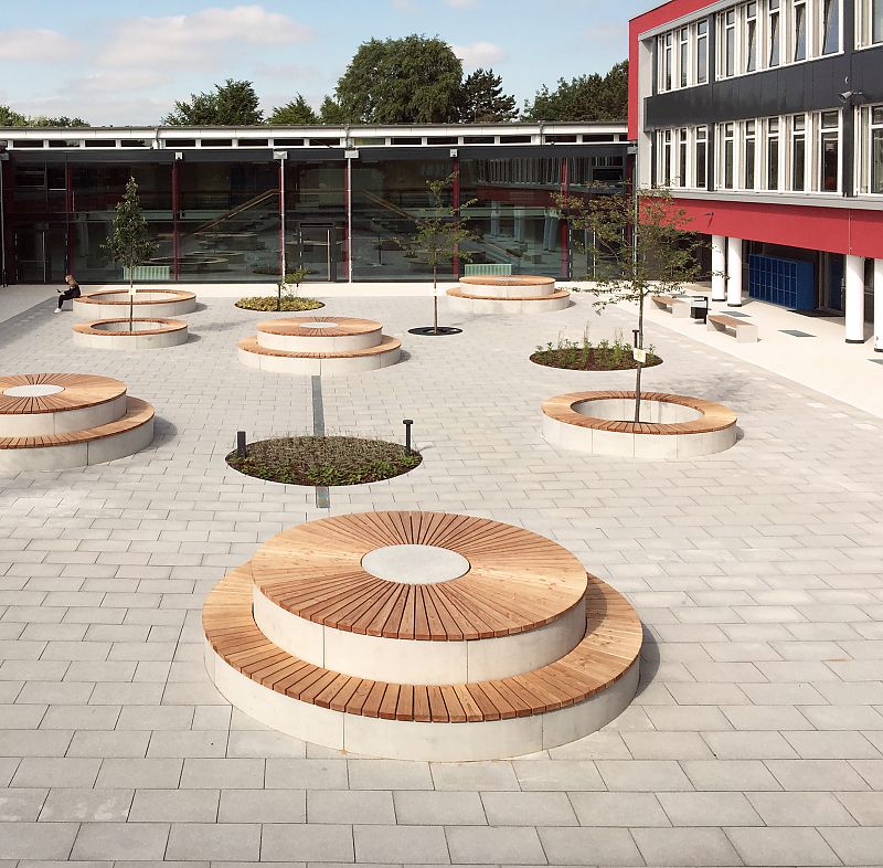 Fassadenplanung, Fassadensanierung und Neugestaltung des Schulhofes der Theodor-Heuß-Schule.