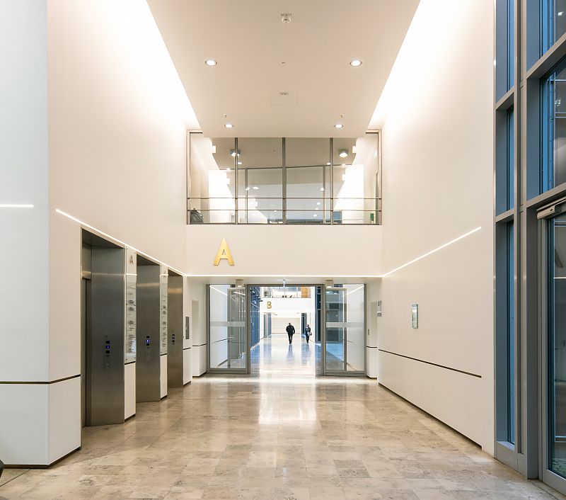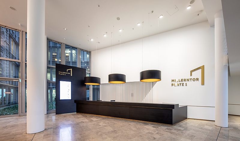 Aus Neu mach Neu! Interior Design und Umbau der Eingangsbereiche zur Erhöhung der Objektattraktivität im Zusammenhang mit der Vermietung der Leerstandsflächen sowie in Vorbereitung auf den Objektverkauf.