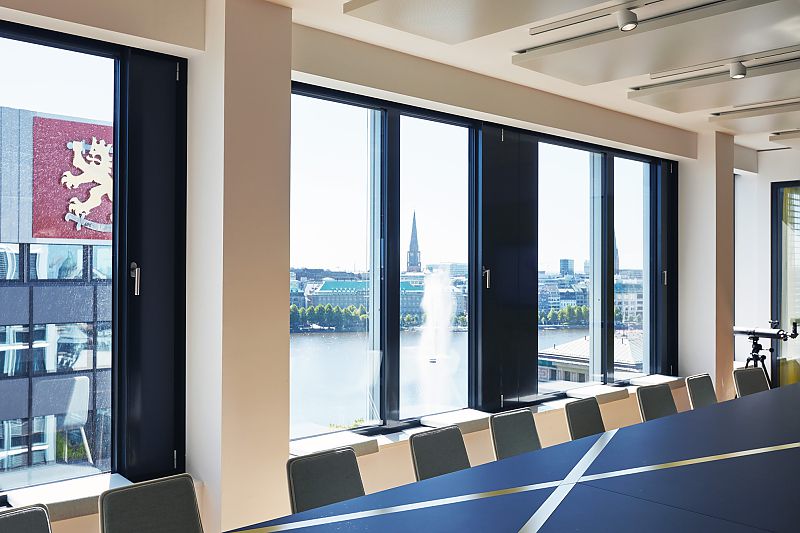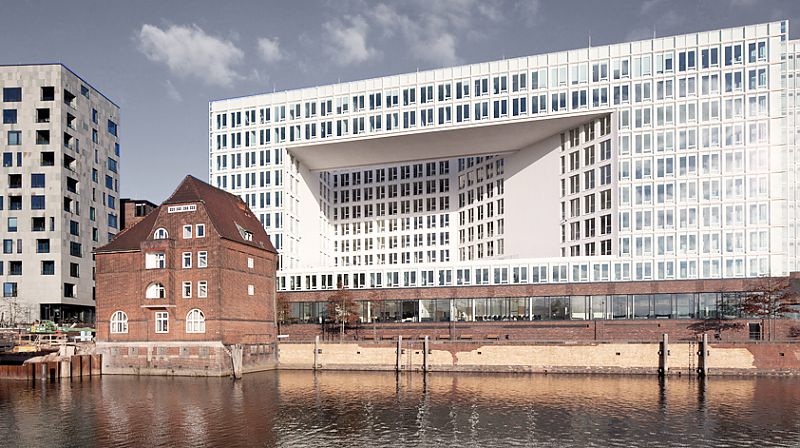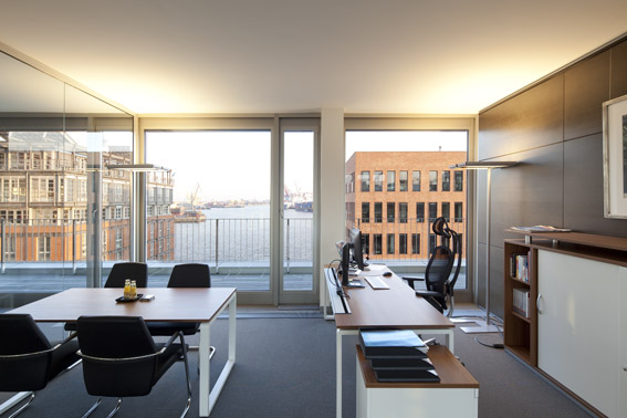 Hamborger Veermaster trifft auf Hightech. Neue Heimat für Schiffstechnologien der Zukunft. Entwurf, Planung und Ausbau der Hamburger Wärtsilä-Niederlassung. Mietflächenausbau für den Eigentümer, Dachterrassen und Umsetzung des mieterseitigen Interior Designs.